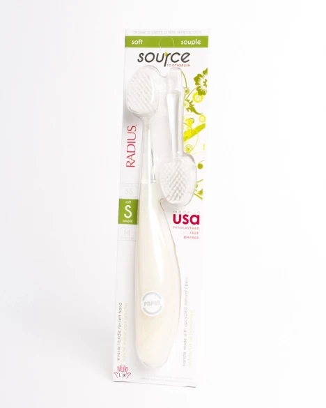 Zobna ščetka RADIUS Source ima 65 % več ščetinskih šopov kot običajne zobne ščetke, kar izrazito poveča učinkovitost ščetkanja. Izredno mehke ščetine so izdelane iz kirurško kakovostnega nylona, ki omogoča izrazito mehkobo ščetkanja. Tanek zgornji sloj ščetin omogoča bolj globinsko in natančno prodiranje ščetin v medzobne prostore.